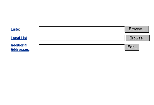 ÁÖ¼Ò Ãß°¡(Additional Addresses)¶õ¿¡´Â ¸®½ºÆ®¿¡ ¹Ìó »ðÀÔÇÏÁö ¸øÇÑ ¸ÞÀÏÁÖ¼Ò¸¦ ÀÔ·ÂÇÏ½Ç ¼ö ÀÖ½À´Ï´Ù. ¿©±â¿¡ Ãß°¡µÇ´Â ÁÖ¼Ò´Â ¸®½ºÆ®¿¡ ÀÖ´Â °ÍÀÌ ¾Æ´Ï¹Ç·Î, Àμ­Æ®³ª º¸¾È¹®¼­ ±â´ÉÀ» »ç¿ëÇÒ ¼ö ¾ø½À´Ï´Ù